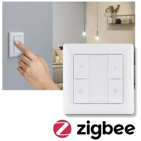 Le commutateur mural Smart Home ZigBee permet une commutation directe et intuitive des produits ZigBee sans smartphone ni passerelle. L’interrupteur mural permet d’allumer et d’éteindre les luminaires intelligents de manière classique, ainsi que de les allumer.Le commutateur Smart Paulmann ZigBee peut être utilisé avec Amazon ECHO, qui dispose d’une interface ZigBee.Pour cela, le commutateur mural est d’abord relié à un Amazon ECHO. Raccordez ensuite l’interrupteur mural aux appareils à commander via ZigBee Touchlink.Les luminaires reliés au commutateur mural et à Amazon ECHO peuvent être commandés en parallèle via Paulmann ZigBee Smart Switch, Amazon Alexa APP et Amazon Alexa.L’interrupteur mural permet d’allumer, d’éteindre et de varier l’intensité. Ce texte a été traduit par une machine.