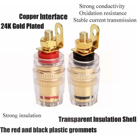 Contenu de l’emballage : 2 bornes de raccordement pour haut-parleur rouge + 2 bornes de raccordement pour haut-parleur noir.