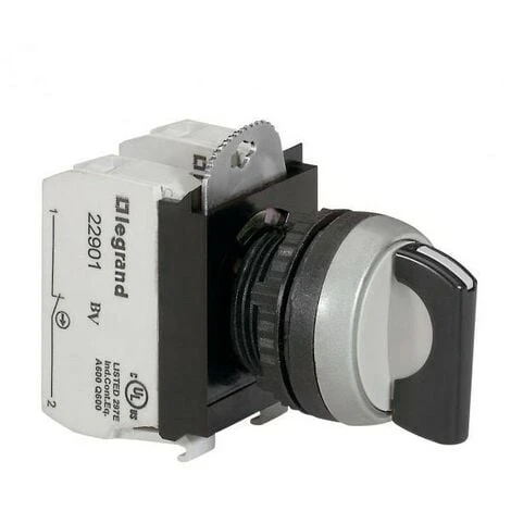 Caractéristiques générales : Boutons tournants – Appareils complets composés de : – têtes – sous-ensemble blocs raccordement par vis (blocs + étriers) IP 66 sauf réf. 237 11/12/13 – IP 67 Conformes à la norme IEC 60947-5-1 – Boutons noirs. Caractéristiques produit : Manette – 3 positions fixes – 45° + 2 NO (239 23 + 229 74).