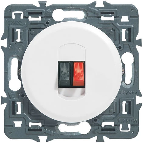 Livraison offerte à partir de 90 euros d’achats chez ce marchand. Prise haut-parleur HP simple à composer. Coloris Blanc. Dimensions 3,5 x 7 x 7 cm; Matière Plastique. Mécanisme prises haut-parleur. Bornes automatiques en face avant, repérées noir/rouge.