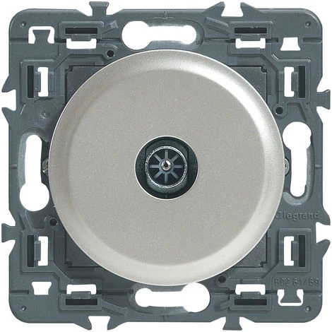 Livraison offerte à partir de 90 euros d’achats chez ce marchand. Prise TV simple mâle, coloris Titane, à composer. Mécanisme prise télévision simple mâle. Prises TV mâle Ø9,5mm. Compatible numérique et hertzien. Bande de fréquences : 0 – 2400 MHz. Câble recommandé : coaxial 19 VATC. Dimensions 3,5 x 7 x 7 cm.