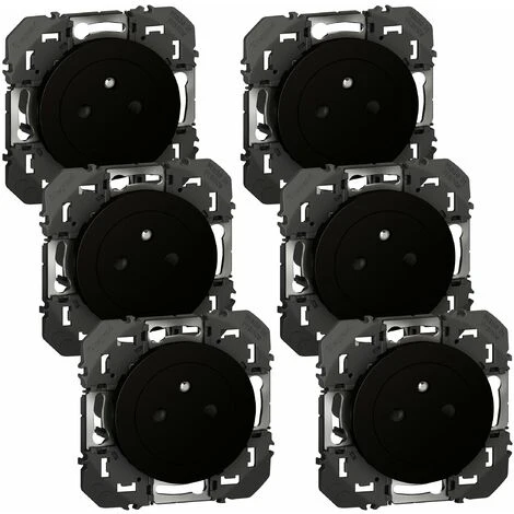 Lot de 6 prises de courant Affleurante avec terre Dooxie – Noir – Composable – Legrand