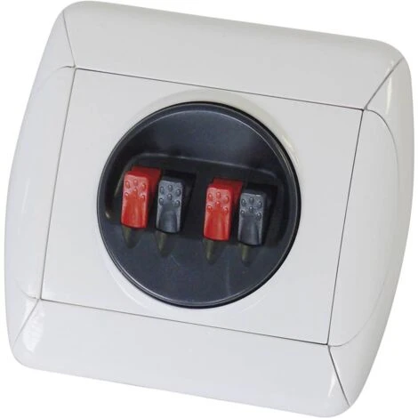 Terminal de connexion double avec système de fixation Clip Fix pour raccorder vos câbles de haut-parleurs d’une section maximale de 2,5 mm². Le terminal s’adapte dans tous les boîtiers d’installation classiques (70 mm).