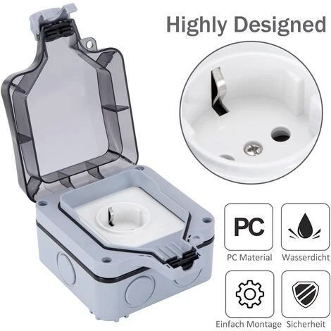 Protection de sécurité : La prise extérieure est dotée d’un couvercle verrouillable pour éviter toute ouverture accidentelle. Tension nominale 220V-240V, courant nominal 16A, résistance d’isolement 50MΩ.
