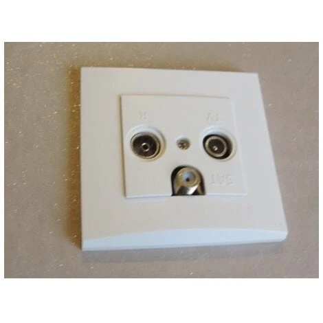 - Prise encastrée sortie TV/FM/satellite blanche complète avec plaque.