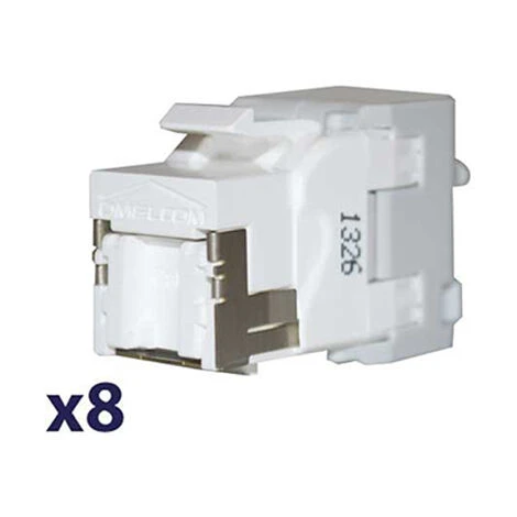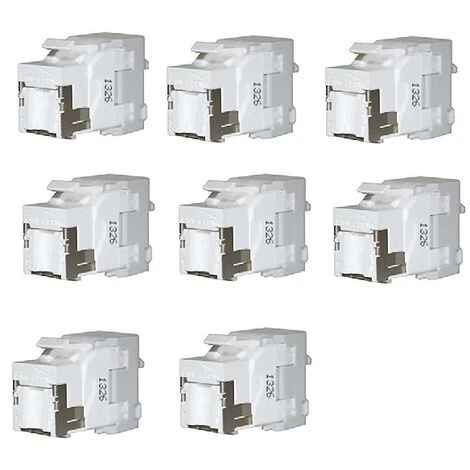 8 connecteurs RJ45 Catégorie 6 Grade 3 + SAT Se raccordent sans outils sur câble multipaire. Type Keystone leur permettant d’être fixés dans les coffrets de communication