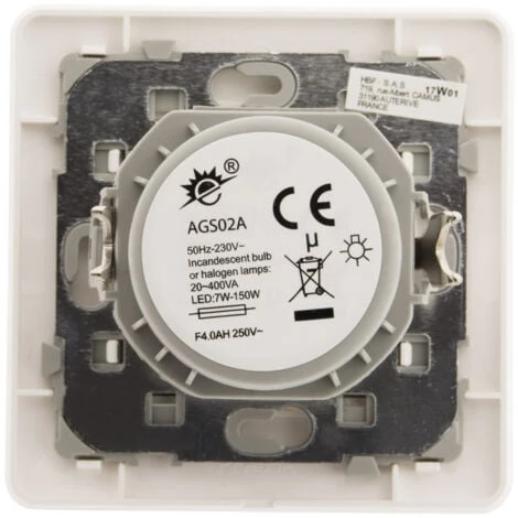 Fonctionne avec 1x fusible de type F 4A. Puissance minimum d’éclairage réglable. Fonctionnement en bouton marche / arrêt par pression et variateur par rotation.