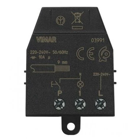 Module relais Vimar 03991- Quid-10A impulsions Module relais magnétique Quid avec impulsions séquentielles ON/OFF, 1 entrée pour bouton NO, 1 sortie relais NO 10 A 220-240 V~ 50/60 Hz, installation encastrée (rétro-éclairage, shunt ou sous couvercle). ***